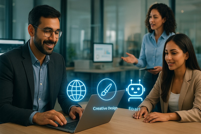 نقدم خدمات تصميم وتطوير المواقع، التسويق الرقمي، التصاميم الإبداعية، وحلول الأتمتة بالذكاء الاصطناعي.